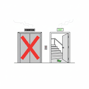 - The “Floor of Fire” Risk: Elevators are not “smart” enough to know where the fire is. If someone on a burning floor pushes the button, the lift might stop there and open its doors directly into the flames, trapping you inside.